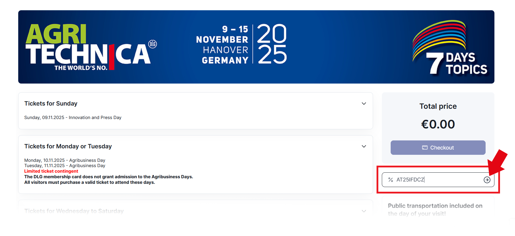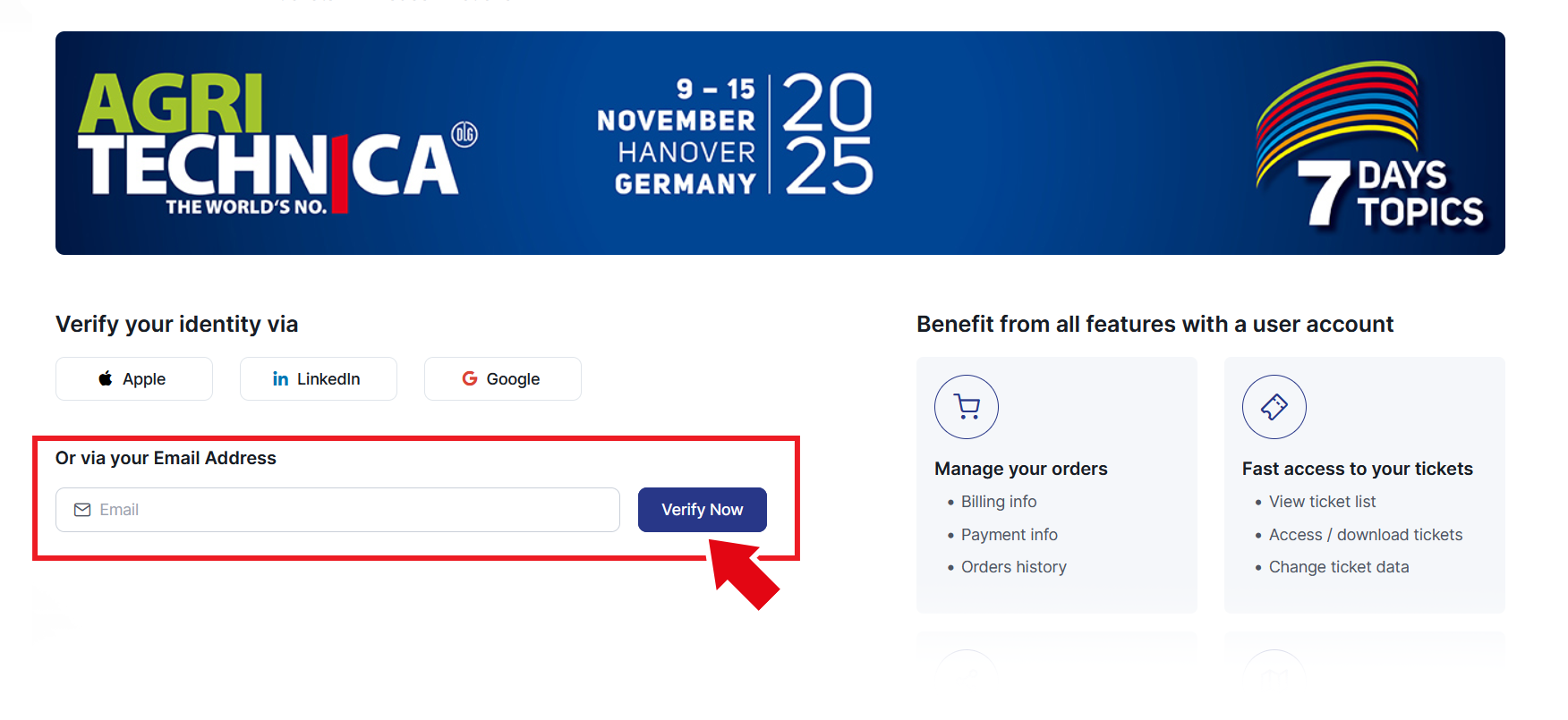 1. Otevřete stránku https://www.messe-ticket.de/DLG-SHOP/AT25/Shop